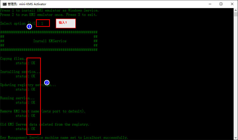 8.然后點(diǎn)擊界面中“Install/Uninstall KMService”安裝“KMS”服務(wù)器.如下圖