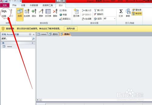 點(diǎn)擊頭部導(dǎo)航:創(chuàng)建-->查詢?cè)O(shè)計(jì)-->關(guān)閉彈出的窗口-->點(diǎn)擊左側(cè)的“SQL”-->進(jìn)行sql命令