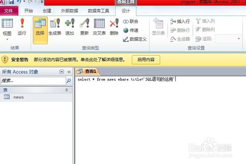 輸入語(yǔ)句 select * from news where title='SQL語(yǔ)句的運(yùn)用'