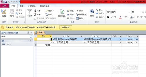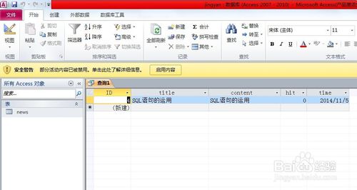 這樣title為“SQL語(yǔ)句的運(yùn)用“的這條數(shù)據(jù)就出來(lái)了