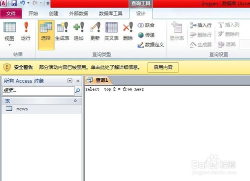 輸入語(yǔ)句 select top 2 * from news