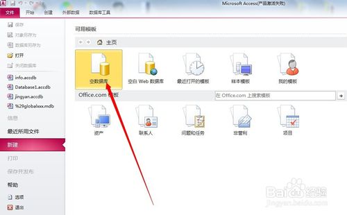 首先創(chuàng)建新數(shù)據(jù)庫(kù),點(diǎn)擊“空白數(shù)據(jù)庫(kù)”