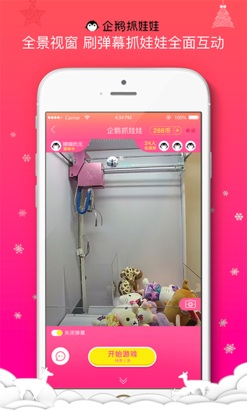 1.企鵝抓娃娃是一款真實(shí)全景手機(jī)抓娃娃APP,以智能手機(jī)為服務(wù)載體,通過(guò)視頻直播+物聯(lián)網(wǎng)技術(shù)實(shí)現(xiàn)遠(yuǎn)程操控娃娃機(jī)進(jìn)行抓娃娃游戲。隨時(shí)隨地都能玩,游戲獎(jiǎng)品每日更新,抓取成功獎(jiǎng)品包郵到家,足不出戶就能玩轉(zhuǎn)娃娃機(jī)!2.游戲幣獲取