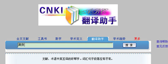 中國知網(wǎng)翻譯助手是中國知網(wǎng)官方推出的一款文獻(xiàn)數(shù)據(jù)查詢和翻譯工具,知網(wǎng)翻譯助手以CNKI總庫所有文獻(xiàn)數(shù)據(jù)為依據(jù),內(nèi)容涵蓋自然科學(xué)和社會科學(xué)的各個領(lǐng)域,可以為用戶提供英漢詞語、短語的翻譯檢索,還可以提供句子的翻譯檢索,是目前最優(yōu)秀的專業(yè)術(shù)語翻譯軟件。