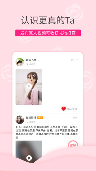 【脫單神器】定時(shí)推薦全國(guó)、同城在線尋愛(ài)的單身與您相親、聊天交友,助您覓得珍愛(ài),找到合適自己的有緣人,讓生活不在孤單寂寞;【視頻打賞】視頻相親約會(huì),征婚求姻緣,快速約會(huì),高效戀愛(ài),為女神/男神打賞禮物,捕獲芳心;