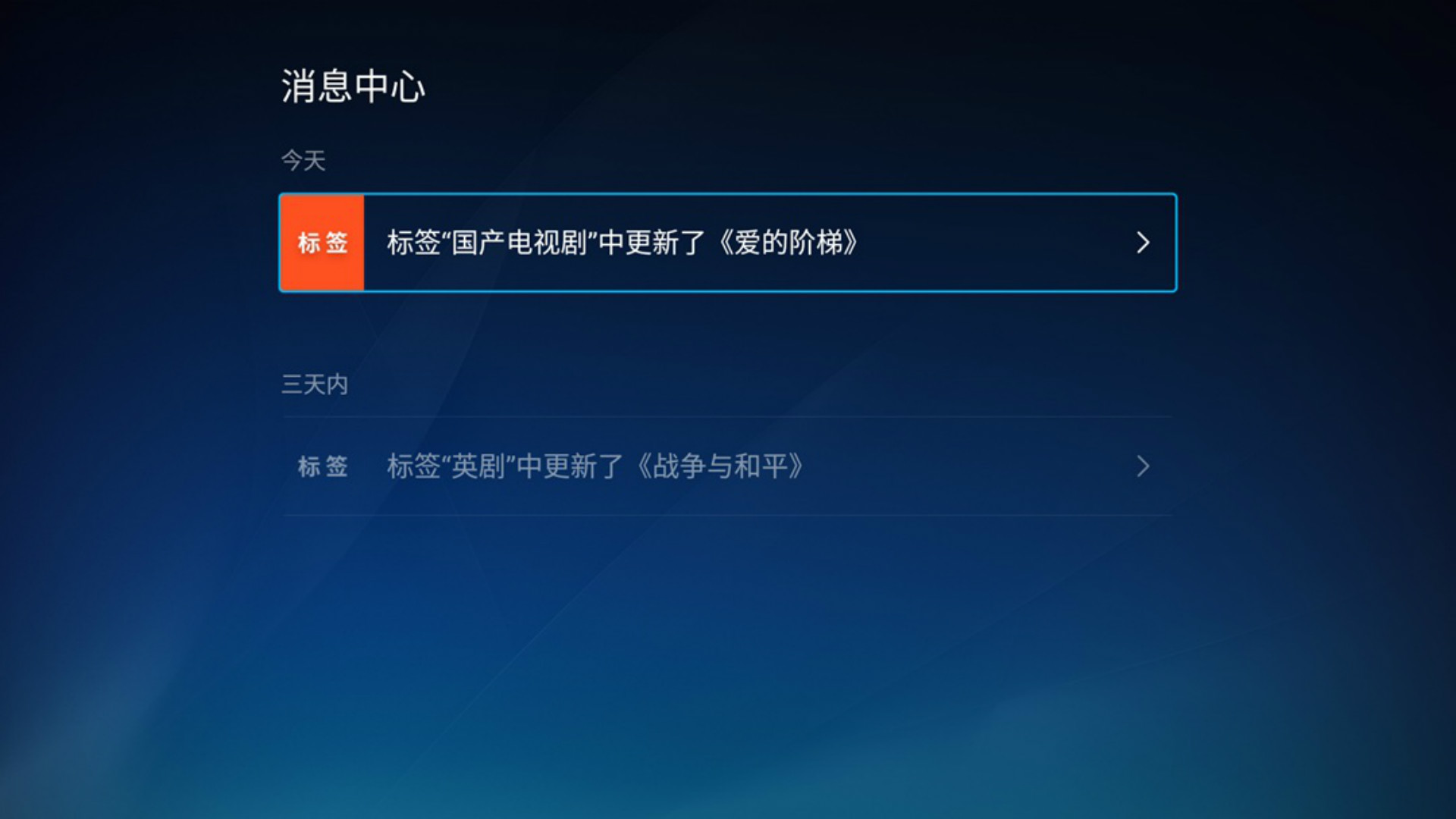 5.一旦訂閱的標(biāo)簽下有更新,電視貓視頻(云視聽(tīng)MoreTV)會(huì)立即通知你,讓你第一時(shí)間get最新的影視劇集;在【帳戶中心】中的【消息中心】可以隨時(shí)查看標(biāo)簽更新哦。