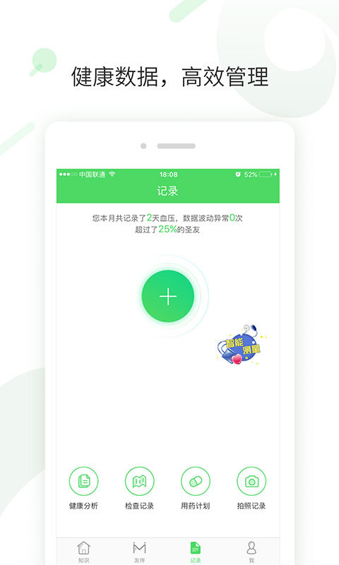 【健康數(shù)據(jù)管理】每天錄入血壓值、脈搏、體重?cái)?shù)據(jù),同時(shí)還可通過(guò)在圣友商城購(gòu)買圣衛(wèi)士特惠智能血壓計(jì)來(lái)進(jìn)行智能測(cè)量,自動(dòng)上傳數(shù)據(jù);