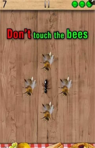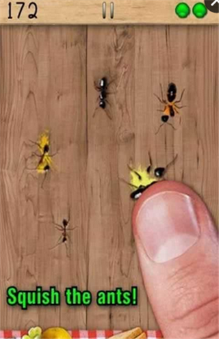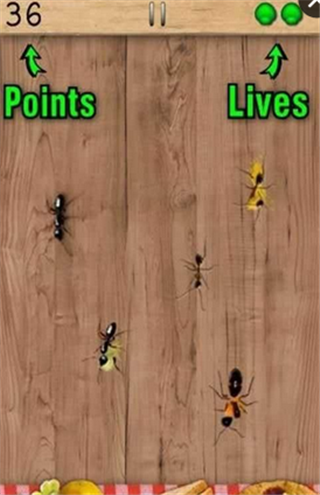 游戲規(guī)則非常簡單,屏幕上方的螞蟻巢穴不斷的有螞蟻爬出來,它們的目的是到達屏幕下方偷吃面包水果。你的任務(wù)就是阻止螞蟻從下方逃脫,迅速靈活又準(zhǔn)確的移動你的手指殺死所有螞蟻,不要放過任何一只,但也要注意,若你打死了蜜蜂,游戲也就結(jié)束了。