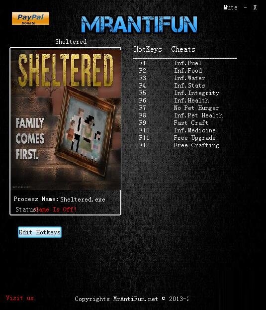 庇護所十二項修改器下載 v1.7 MrAntiFun版 庇護所十二項修改器是一款專為《庇護所》游戲玩家們所提供的游戲修改工具。該工具不僅小巧綠色,還可以為玩家免費提供十二項強大的游戲修改功能,有需要的自行下載。