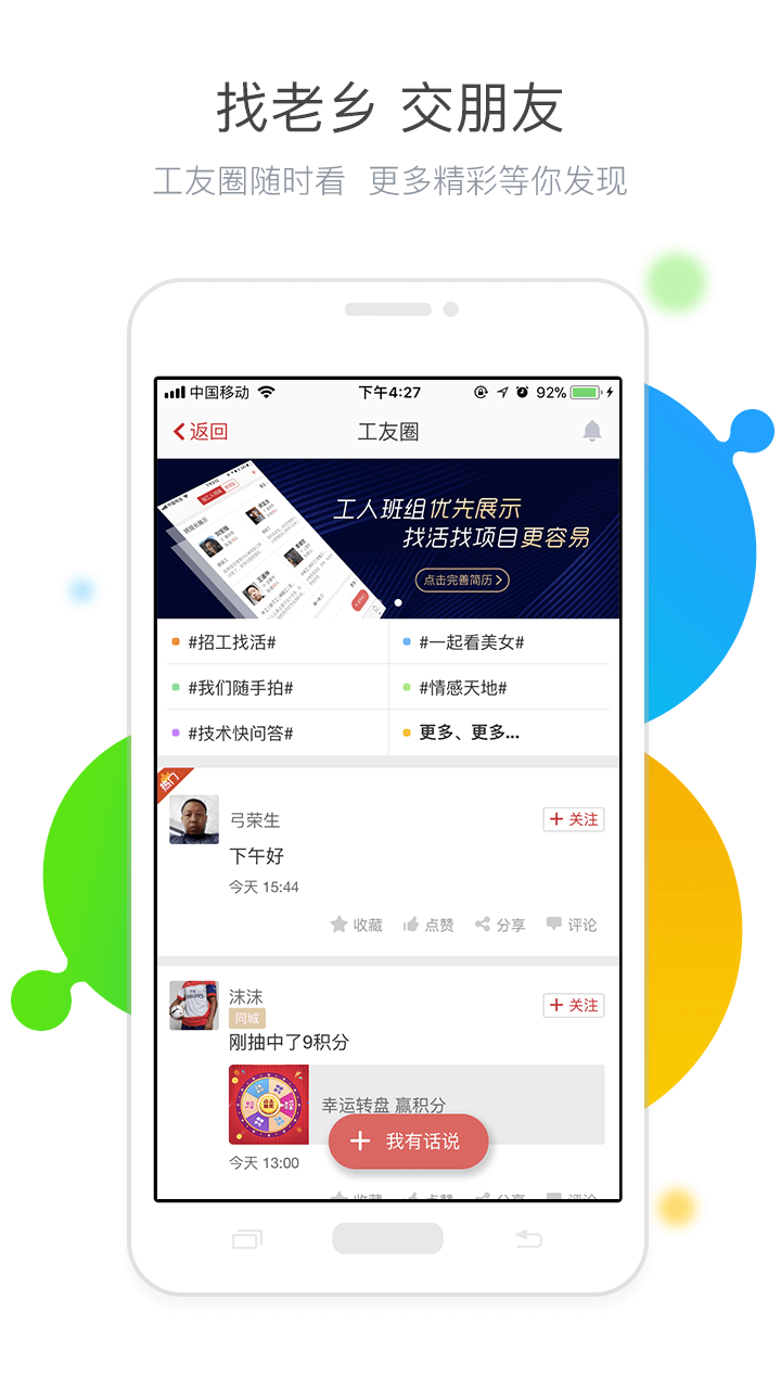 4、找老鄉(xiāng)交朋友、工友動(dòng)態(tài)全掌握;
