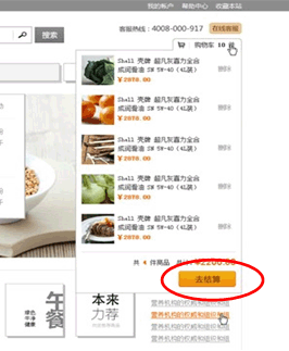 點(diǎn)擊頁面右上角購物車按鈕出現(xiàn)下拉框,然后再點(diǎn)擊"立即去結(jié)算"