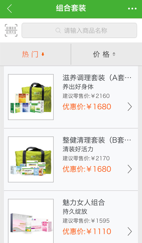 2.產(chǎn)品展館包括組合套裝、營(yíng)養(yǎng)保健食品、美容護(hù)膚、日用護(hù)理、健康家居等選項(xiàng),如圖: