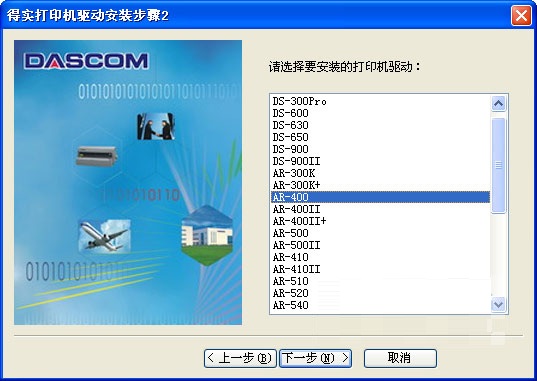 3、雙擊exe文件,選擇相應(yīng)的打印機(jī)型號(hào)點(diǎn)擊下一步按提示安裝;