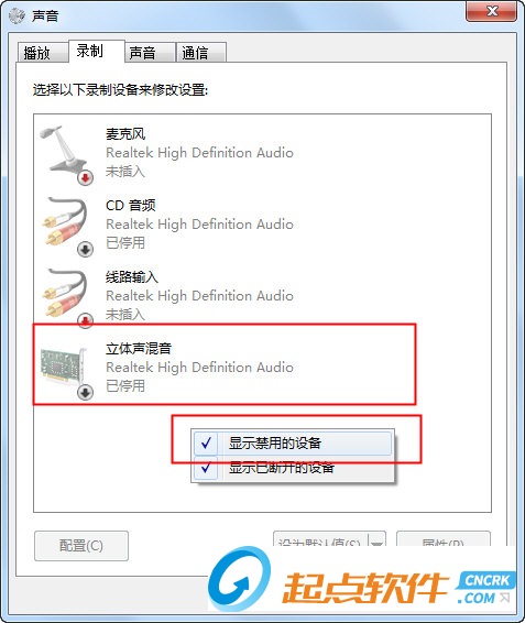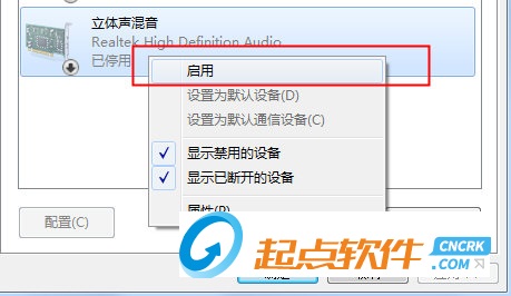 然后將【立體聲混音】的設(shè)備啟用并設(shè)置為默認(rèn)設(shè)備