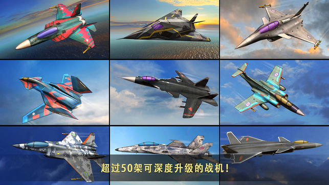 ?酷!炫!的現(xiàn)代戰(zhàn)術(shù)空軍編隊(duì):超過50種世界真實(shí)先進(jìn)戰(zhàn)斗機(jī)供您駕馭!解鎖并升級您心愛的座駕以達(dá)到最佳性能!