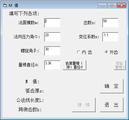 1.可以計算圓柱齒輪M值;2.可以計算圓柱齒已知公法線長與弧厚度;