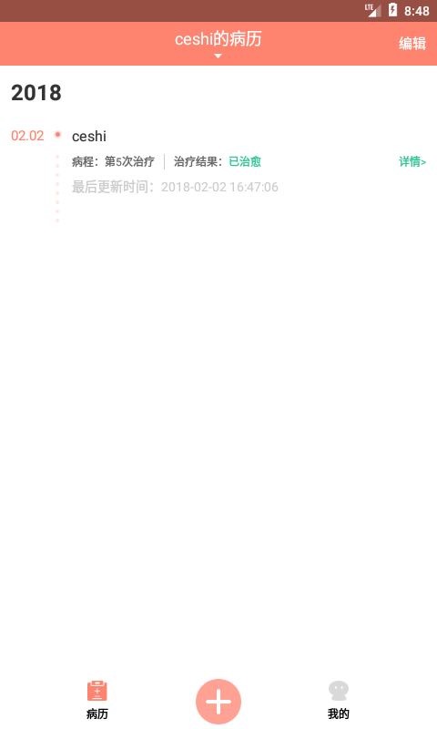 1.可以添加患者信息2.可以通過圖片,文字的形式記錄患者疾病治愈過程