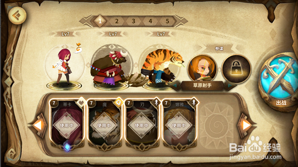 第三步,屏幕上方的位置是出戰(zhàn)人員,下方卡片為已擁有角色,選中某位置后點(diǎn)擊擁有的角色即可讓其出戰(zhàn),分配完畢后點(diǎn)擊出戰(zhàn)按鈕,如下圖所示: