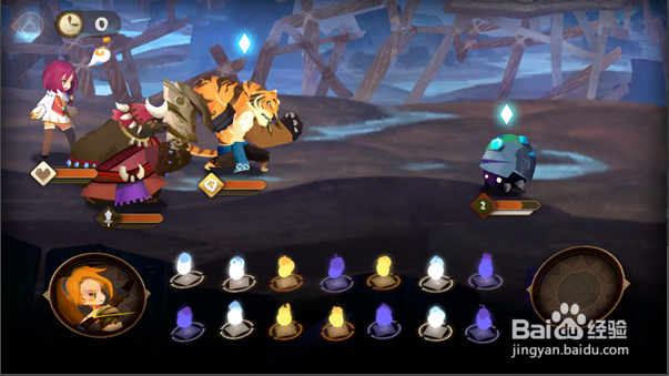 第五步,出現(xiàn)敵方人物后,可通過(guò)點(diǎn)擊下方不同顏色火焰進(jìn)行攻擊或者治療,可將相同顏色疊加成更高傷害,其中參謀等角色需要點(diǎn)擊人物頭像進(jìn)行使用,且其有冷卻時(shí)間,如下圖所示: