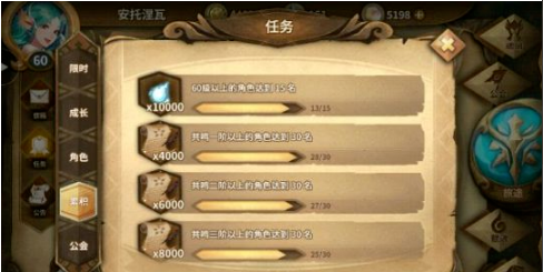 其中主線劇情和挑戰(zhàn)關(guān)卡為一次性獲取,每日任務(wù)、英雄共舞和藏寶地圖可以反復(fù)獲得,每天都應(yīng)該完成。(從新建帳號(hào)到60滿級(jí),預(yù)計(jì)在50天左右)
