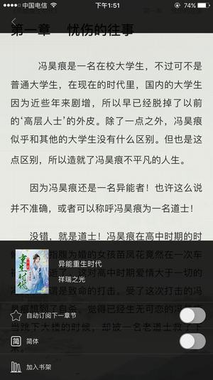 4、原生態(tài)的閱讀體驗,夜間模式,自動閱讀,隨意換背景和字體大小,讓您暢快閱讀!