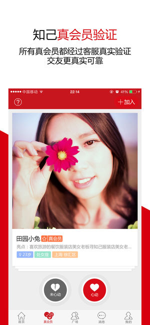 【成熟】面向30歲以上高素質(zhì)中年人士;【真實(shí)】首推“真會(huì)員”驗(yàn)證,人工認(rèn)證用戶,免受騷擾欺詐,比實(shí)名制還要真;