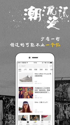 潮流資訊第一時間網(wǎng)羅全網(wǎng)潮流熱點,每天都有海量的資訊。根據(jù)用戶興趣,歸納12個分類:潮流、鞋履、視頻、運動、滑板、娛樂、生活、幽默、正妹、音樂、科技、亞文化。在EYEE蜂潮可以快速了解和學(xué)習(xí)行業(yè)潮流資訊,時刻掌握潮流趨勢。