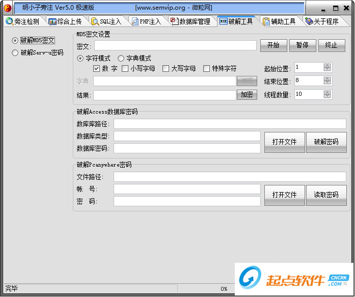 4、數(shù)據(jù)庫(kù)管理功能:新建數(shù)據(jù)庫(kù)、瀏覽數(shù)據(jù)庫(kù)、新建表及字段、壓縮數(shù)據(jù)庫(kù)、修改數(shù)據(jù)庫(kù)密碼、 MD5加密、數(shù)據(jù)庫(kù)密碼破解、增加及刪除記錄等功能!