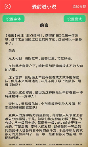 愛前進(jìn)小說,千萬本免費(fèi)閱讀!小說追新黨必備!還有界面是精簡明了,非常舒適的閱讀體驗(yàn)!熱門分類、熱門小說、盡在愛前進(jìn)小說閱讀神器!本本都精彩,本本都免費(fèi),看都看不完。【軟件特色】