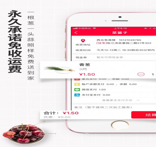 平臺(tái)提供近3000種高品質(zhì)產(chǎn)品,綠色葉菜、時(shí)令鮮果、現(xiàn)殺活魚(yú)、糧油米面、堅(jiān)果零食應(yīng)有盡有,3分鐘下單,上午定下午送,收貨時(shí)間有你決定,超準(zhǔn)時(shí)(準(zhǔn)確到分鐘)!