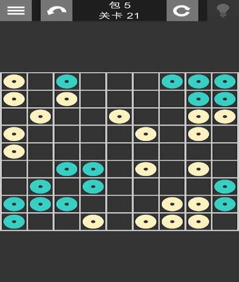 斷開四個游戲是一款非??简?yàn)玩家邏輯推理能力的益智手游,游戲擁有600多個關(guān)卡,難度從低到高依次遞增,玩家需要在方格中填充黃色或綠色的塊,但是要保證各個方向都沒有同一顏色的四個塊,否則就會導(dǎo)致游戲結(jié)束。