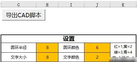 1、進(jìn)入CAD展點(diǎn)或CAD展線表格:在右側(cè)金色單元格輸入好設(shè)置數(shù)據(jù)。