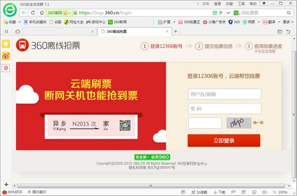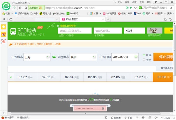 1.360安全瀏覽器搶票專版,內(nèi)置搶票王插件2.自動填寫驗證碼,搶票速度提升百倍