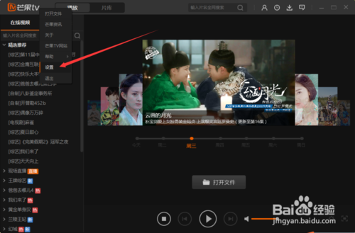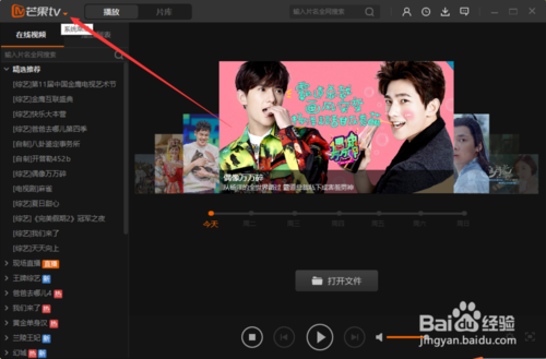 在打開的芒果TV視頻程序窗口,點擊左上角的芒果TV“系統(tǒng)菜單”按鈕。如圖所示