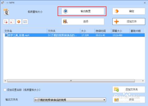 完成選擇后,我們就會看到此視頻會自動拖入視頻編輯框,我們再選擇上方的“輸出配置”。