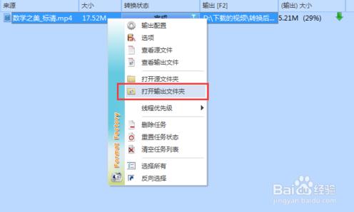 鼠標右鍵點擊視頻任務(wù),選擇打開輸出文件夾,我們就能找到壓縮的視頻文件。