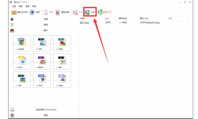 回到格式工廠主界面,我們點擊上方的“開始”,視頻壓縮就會自動開始。