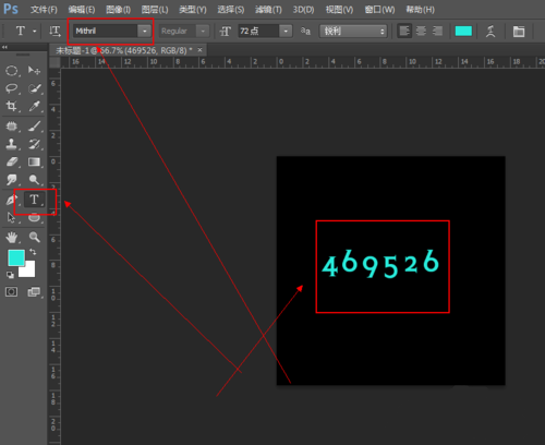 第六步:粘貼完我們的字體之后,退出C盤(pán),然后點(diǎn)擊打開(kāi)我們的PS軟件,點(diǎn)擊“文本工具”,找到我們剛才安裝的字體,然后在我們的PS畫(huà)布中進(jìn)行輸入文本內(nèi)容即可。