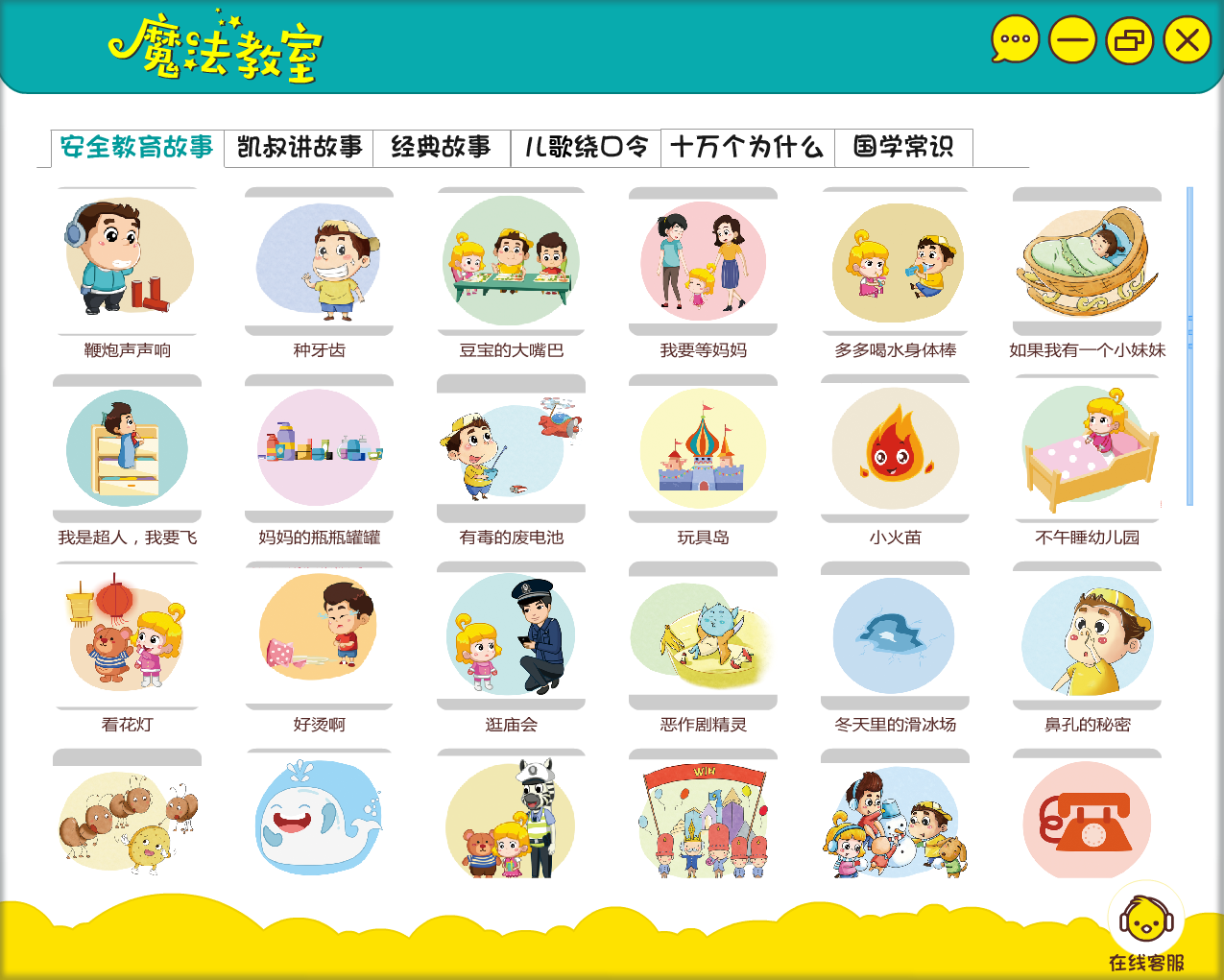 魔法教室是專為2~6歲兒童教學量身創(chuàng)作的幼教資源素材庫,所有內(nèi)容符合《3~6歲兒童學習發(fā)展指南》要求。