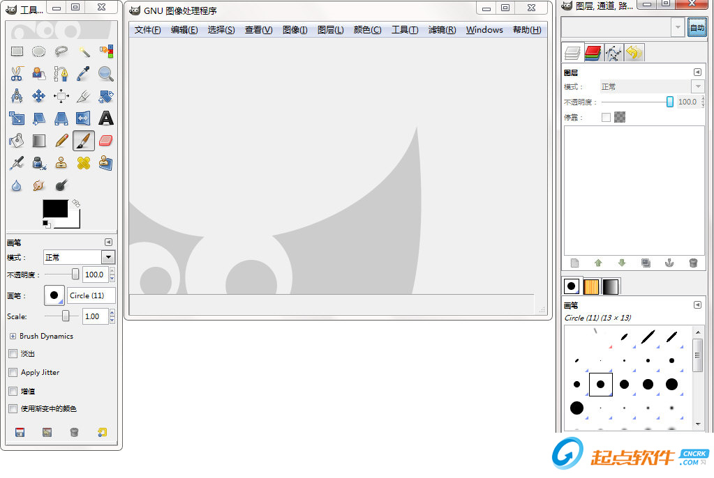 完整的圖像工具套件,包括畫筆、鉛筆、噴槍、克隆等工具。基于平鋪(Tile-based)的內(nèi)存管理使圖像大小限制在可用的磁盤空間內(nèi)。