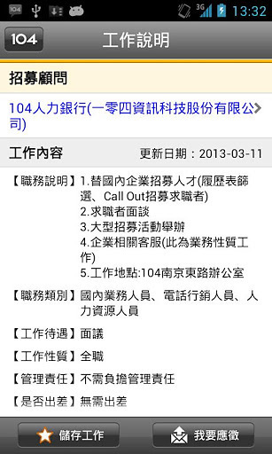 隨時隨地找工作,即時信息不漏接;第一時間接收「公司通知」、「公司瀏覽紀錄」的通知訊息,并可立即得知最新的「新職務通知」與「配對工作」。 除了基本的搜尋工作與學生找打工,更提供給會員與Web同等級的專屬服務。