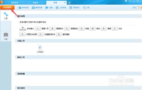 點盒子主頁的游戲圖標(biāo)后,會進(jìn)入游戲管理界面。要啟動游戲的話,點左上角的啟動游戲程序即可。在這個頁面還會提供相關(guān)的服務(wù),例如點游戲修復(fù),會檢測并且下載運行庫,游戲加速,云存檔等功能。游戲操作也會提示
