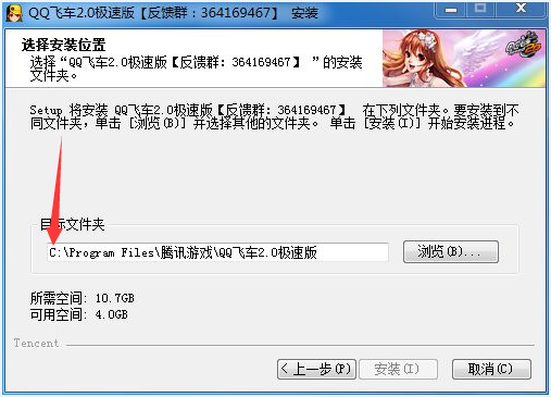 3、選擇合適安裝位置后點擊安裝qq飛車