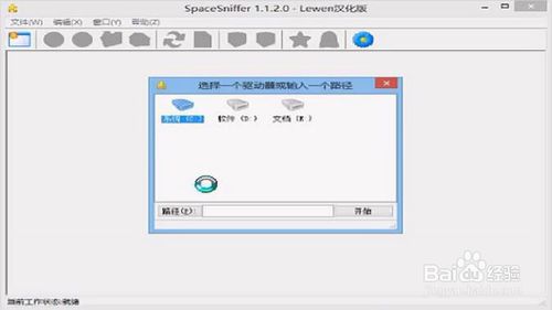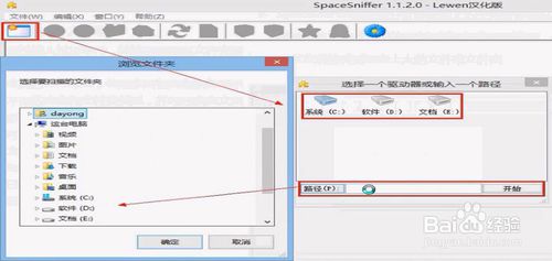 打開(kāi)軟件后,點(diǎn)擊左上角如下圖的位置,然后再選擇要分析的盤(pán)符或者自己選擇路徑,即可查找分析改位置磁盤(pán)空間的使用情況。