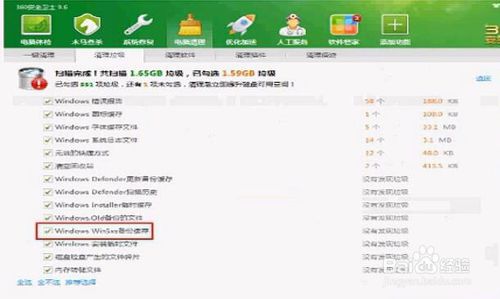 WinsSxS文件夾:為Win7系統(tǒng)獨(dú)有的,里面包含系統(tǒng)重要組件和更新卸載程序等相關(guān)文件,不可直接刪除,可使用360垃圾清理選中Winsxs備份文件后自動(dòng)清理,或者使用系統(tǒng)自帶的“磁盤(pán)清理”功能“清理系統(tǒng)文件”或使用第三方程序進(jìn)行清理,如:Windows更新清理工具(存在一定風(fēng)險(xiǎn)性)