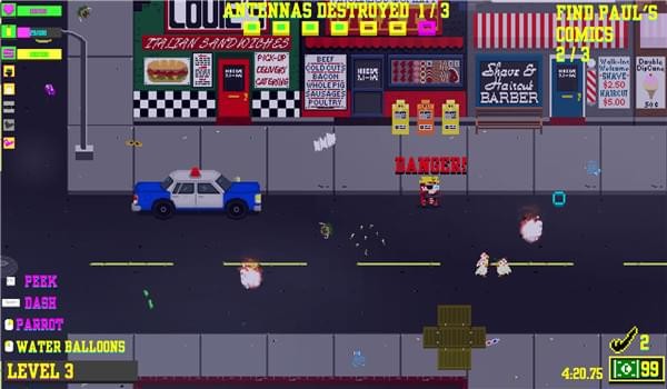 萬圣節(jié)的晚上。一個沉睡的小鎮(zhèn)叫溪邊。一個神秘的嗡嗡震動你的糖昏迷。當(dāng)你凝視窗外,擦去眼睛里的睡眠時,你懷疑自己的神智:成群的爬行者聚集在不祥的天線周圍!警察在哪里?大人在哪里?難道沒人能阻止這一切嗎?啊!原來,邪惡博士Apollyon打開了門戶的無底洞。它是由你去他接管世界之前阻止Apollyon博士!但首先,拯救計劃讓我們都能回到不給糖果就搗亂!你扮演一個不情愿的,中學(xué)的名叫Squirt的英雄,他醒來發(fā)現(xiàn)自己在萬圣節(jié)鎮(zhèn)被小兵。噴射的戰(zhàn)爭的武器是隨機(jī)的槍支和獨特的能力與服裝。噴射槍具有隨機(jī)屬性;噴射的彈藥耗盡,Squirt將自動切換到另一個隨機(jī)的槍。收集升級令牌以永久解鎖新的彈藥類型。roguelite意味著大量的死亡,但是商店升級,彈藥解鎖,解鎖和金錢攜帶服裝。五個不同的區(qū)域制定計劃;完成目標(biāo)前進(jìn)到下一區(qū)。