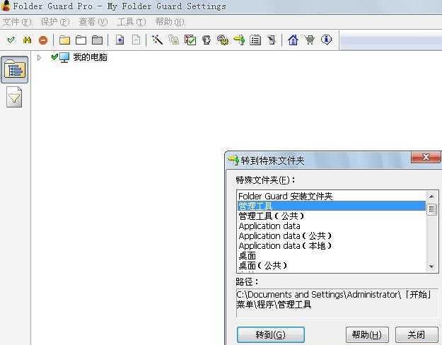 然后,就是“特殊文件夾”了,如果擔(dān)心別人改動(dòng)你的系統(tǒng)設(shè)置什么的,可以把具有管理功能的文件夾隱藏,同時(shí)將系統(tǒng)文件設(shè)為只讀。我們只要選擇要操作的文件夾,“轉(zhuǎn)到”,再按文件夾權(quán)限控制操作就可以了。(往下看)