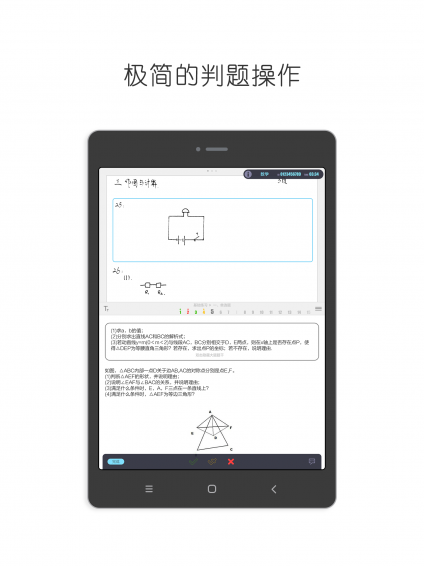 獲取任務(wù)后教師就可以批閱任務(wù)了,客觀題部分有后臺判,主觀題有教師判。教師根據(jù)用戶的答案為用戶判題,可以選擇對、半對、錯誤,每判完一道題教師可以對該題進行評論,語音評論和文字評論均可,對后臺判的客觀題也可以加評論。整份試卷判完,教師可以對該次周練或作業(yè)進行整體語音和文字評論。