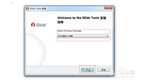 首先在本站下載islide插件。雙擊下載后的exe文件,在彈出的界面中(選擇安裝語言選擇默認的簡體中文),然后選擇下一步。