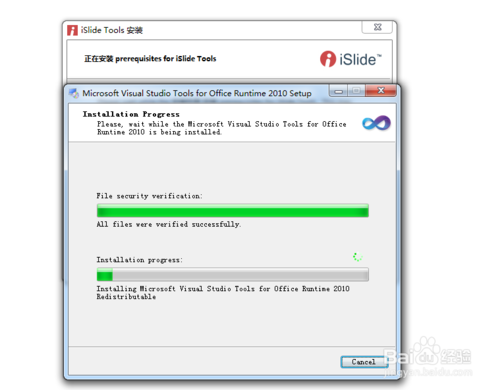 islide需要visual Studio tools for office4.0 runtime 和.netframework 4.5支持,點擊下一步即可,會自動下載這兩個工具。